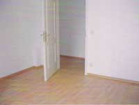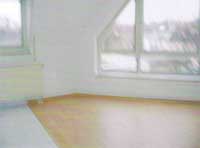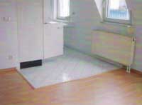 mit Laminat verlegt. Die Küche ist voll eingerichtet (Herd